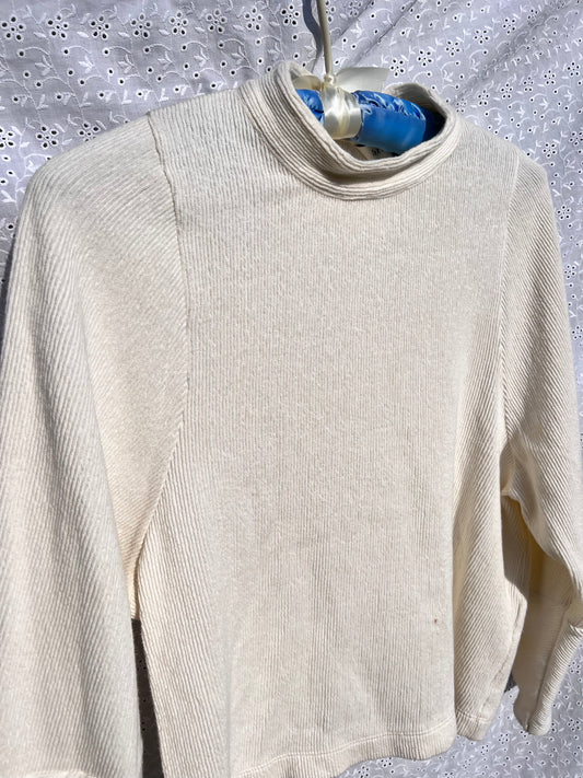 Reformation White Square Neck Ruched Long Bubble Sleeve Top