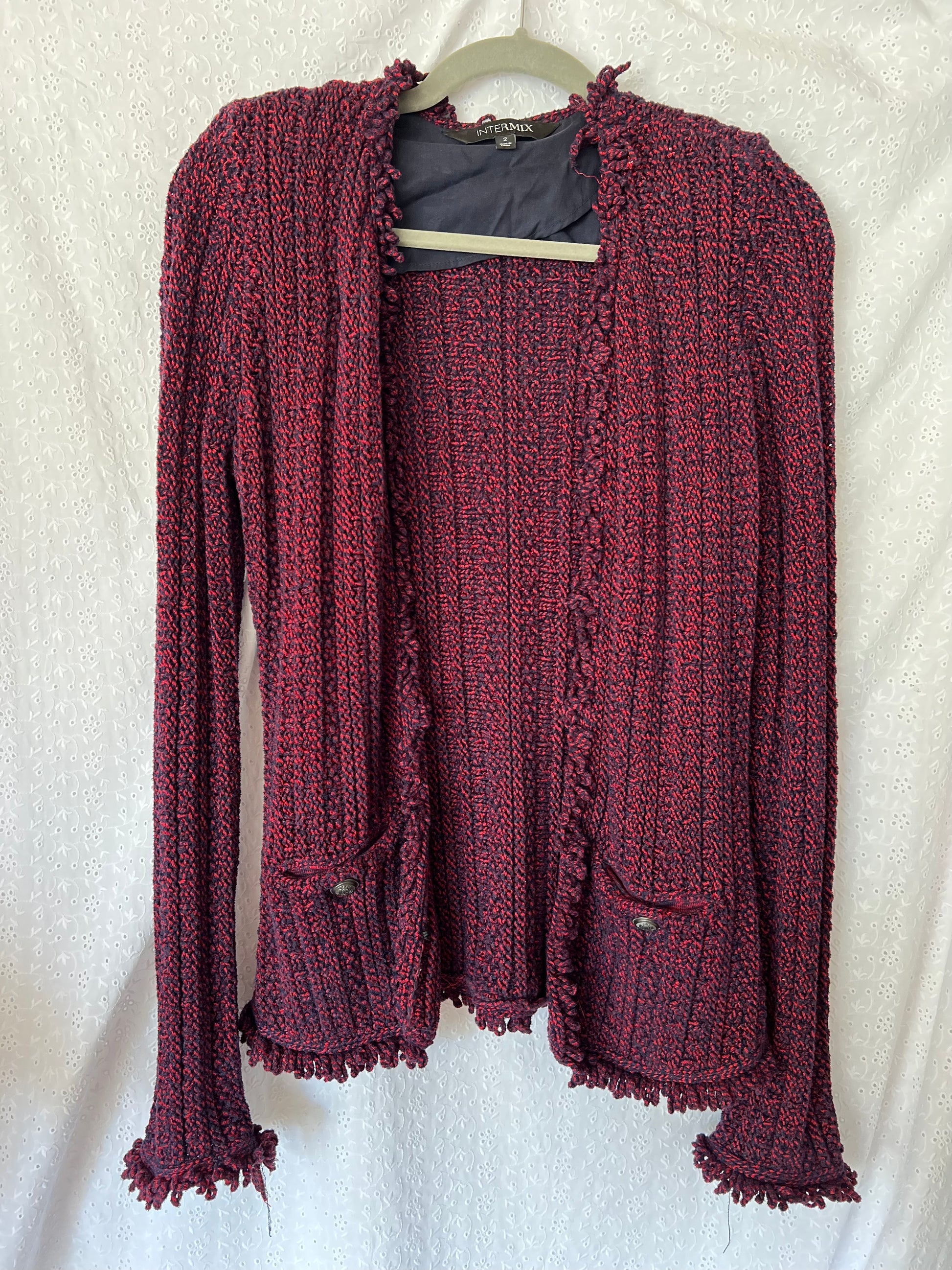 the Ikaterina two tone cardigan (has structured shoulders and hidden hook eye closures on front)