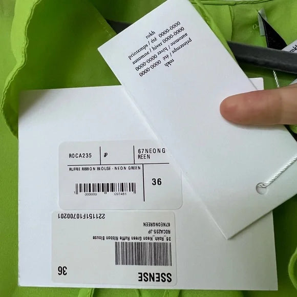 Rokh Neon Green Ruffle Button Back Blouse