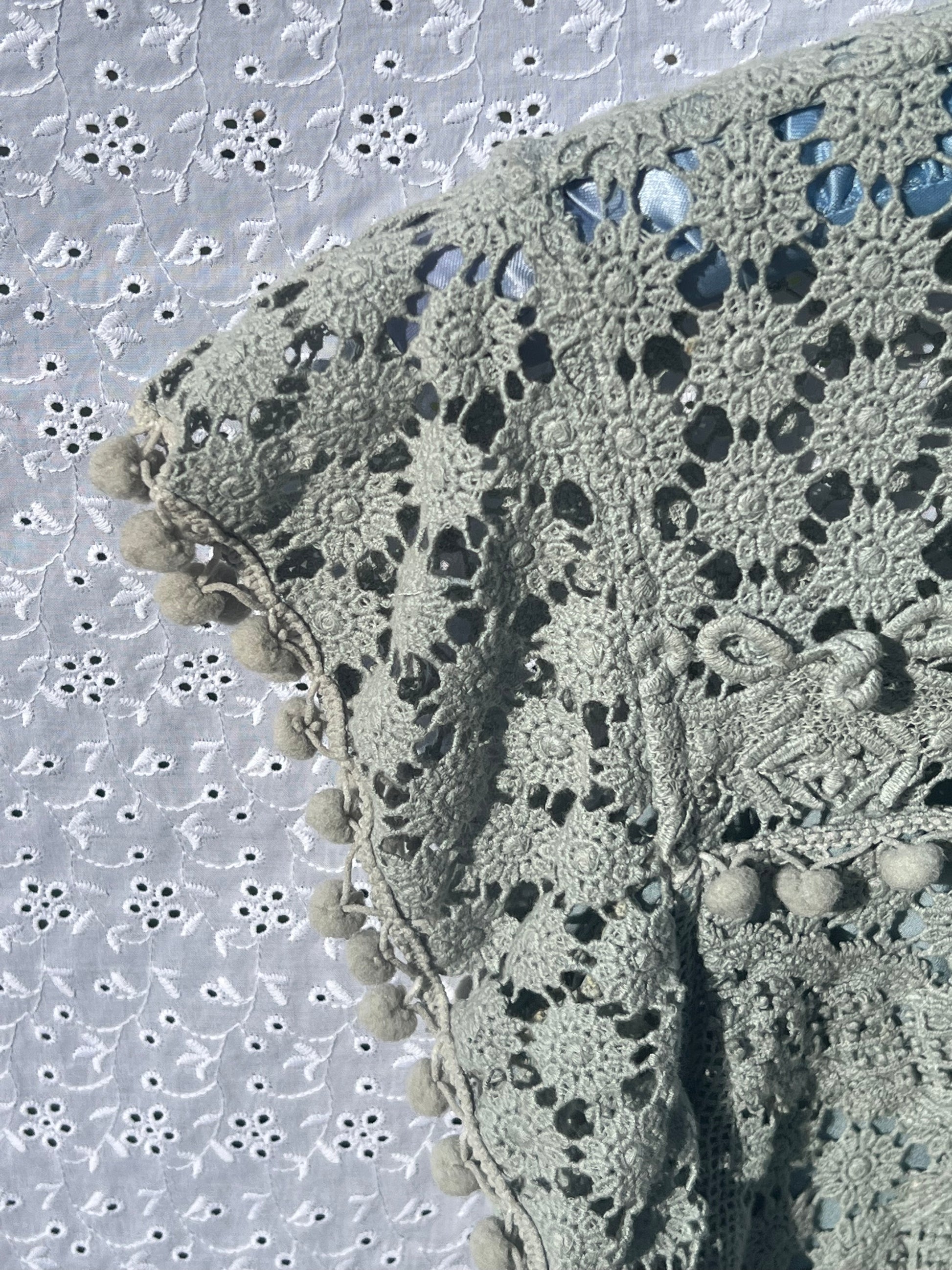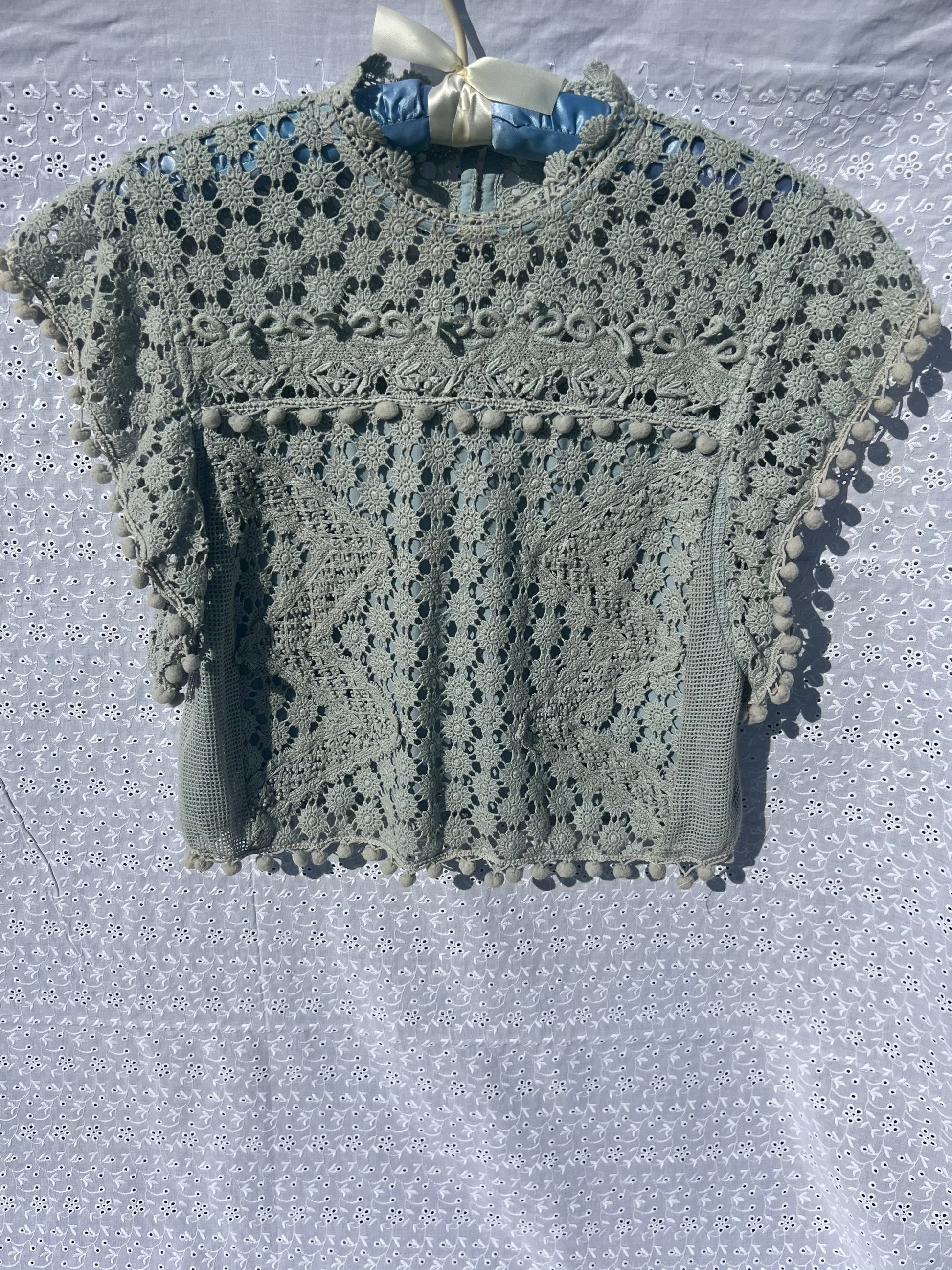 Revolve Tularosa Blue Crochet Pom Pom Top